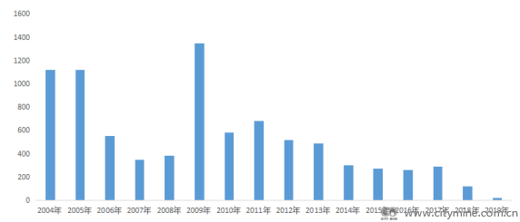 图一: 粗统2004-2019年以来中国废钢进口量(单位: 万吨)