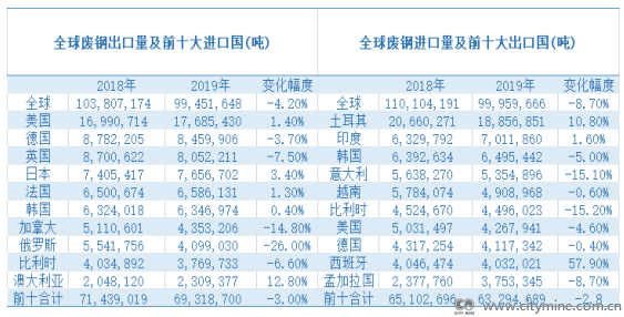中国主要废钢出口国一般为经济发达国家,如美国、德国、英国、法国、日本、加拿大荷兰、比利时、罗马尼亚、俄罗斯等国家; 中国主要废钢进口国一般为钢铁工业发展较快而废钢资源暂不能满足需要的国家,如土耳其、韩国、中国、西班牙、德国、比利时、意大利、印度等。