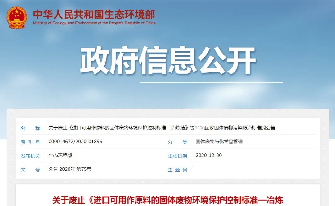 关于废止11项国家固体废物污染防治标准的公告